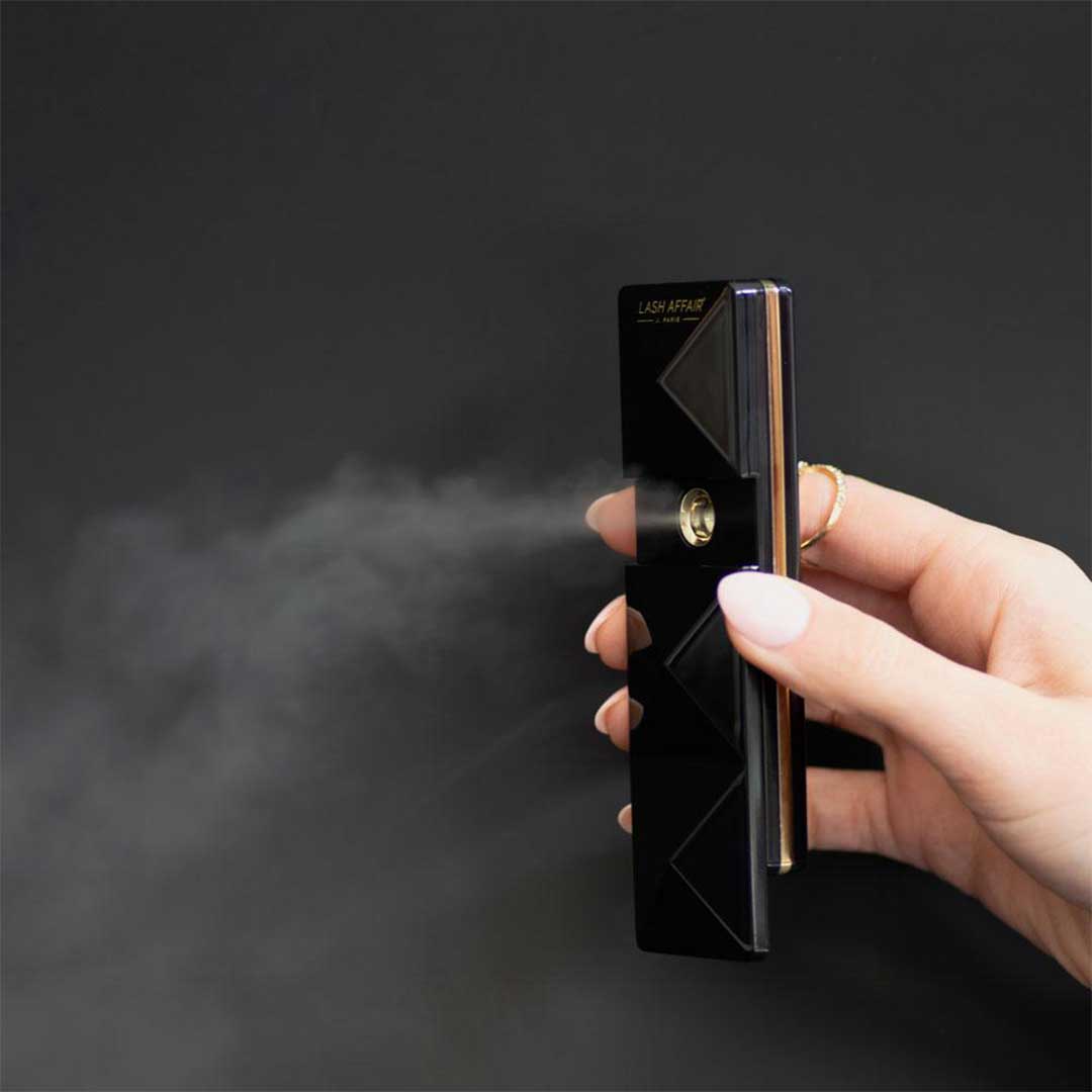 The fine mist from our Nano Mister quickly and effectively cures adhesive (aka eyelash glue) + rehydrates clients' lashes and eye area. Waiting 24 hours before getting lash extensions wet is a thing of the past - the Nano Mister has just the right touch to allow those steamy romances to happen a lot quicker. Plus, the mist works wonders to reduce exposure to fumes!